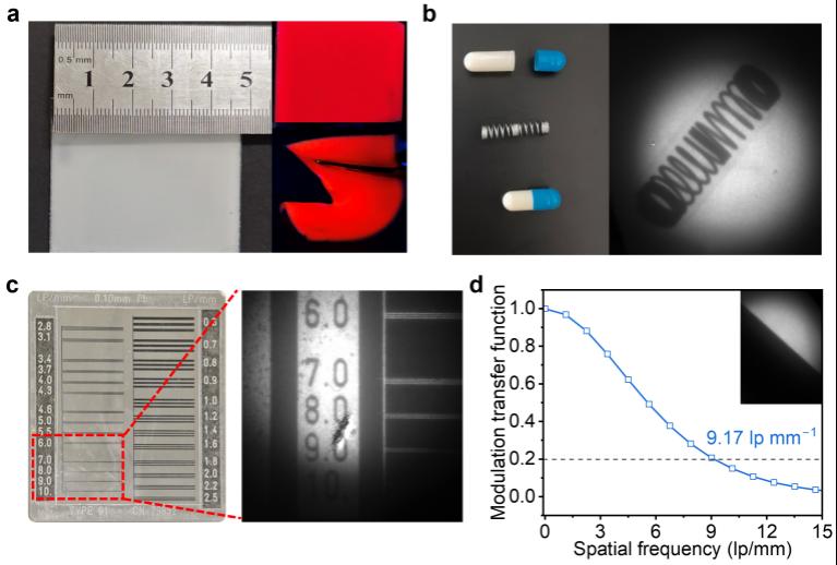 图1. Cs3EuCl6@PDMS薄膜闪烁体的X射线成像性能