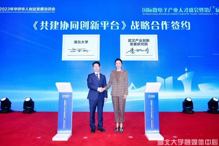 活动中,艾青松与武汉产业创新发展研究院院长李锡玲签订《共建协同创新平台》。我校与武汉产业创新发展研究院在成果转化、技术攻关、人才培养等方面达成合作,将围绕微电子、新材料等重点领域共建协同创新平台,建立以绩效考核和科技创新为导向的人才互聘互认新模式。来自俄罗斯工程院、德国科隆大学数理学院、美国卡内基梅隆大学、珠海先进集成电路研究院的四位专家被我校聘为校级人才。