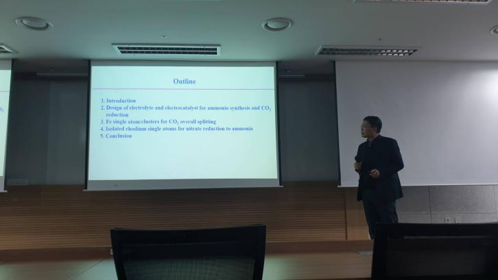 在报告中,张老师首先向与会师生简要介绍了太阳集团古天乐的历史沿革、发展现状以及学校在能源科学与工程领域的研究成果。随后,他以“单原子电催化材料在二氧化碳还原及合成氨领域的应用”为题,详细阐述了该研究最新进展,分享了团队在该领域的创新成果和独特见解。