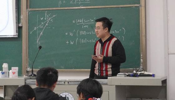 (图为贺卓然老师讲述公开课《普通物理力学》)