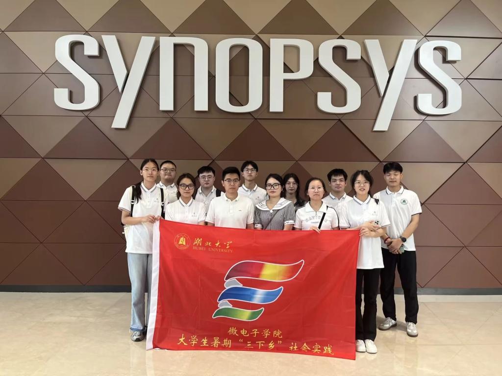 在新思科技武汉全球研发中心,实践团队在企业工作人员和吉祥物“小新”的带领下,参观了企业文化墙、时光长廊和新思科技未来馆,了解了芯片设计全链路以及各个板块之间的关联,让实践团队成员对芯片设计的过程有了深入了解,了解到了新思科技的前瞻性。