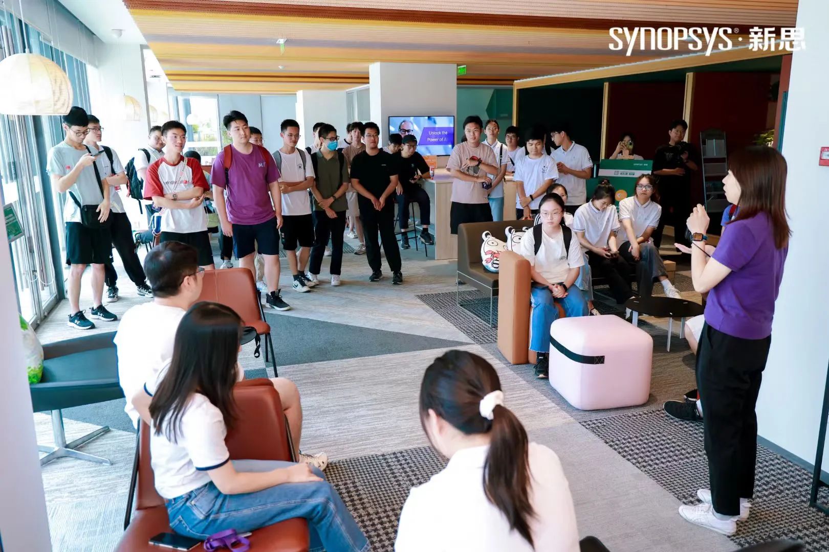 在新思科技一楼会议室,该公司校招负责人向实践团队成员介绍了公司招募的相关要求,给出了一定建议,对学生提高求职能力有很大的帮助。公司的项目研发人员向实践团队介绍了当前的前沿技术,从芯片研发过程出发,深入介绍了芯片研发技术,让实践团队成员对芯片研发有了更进一步的了解。