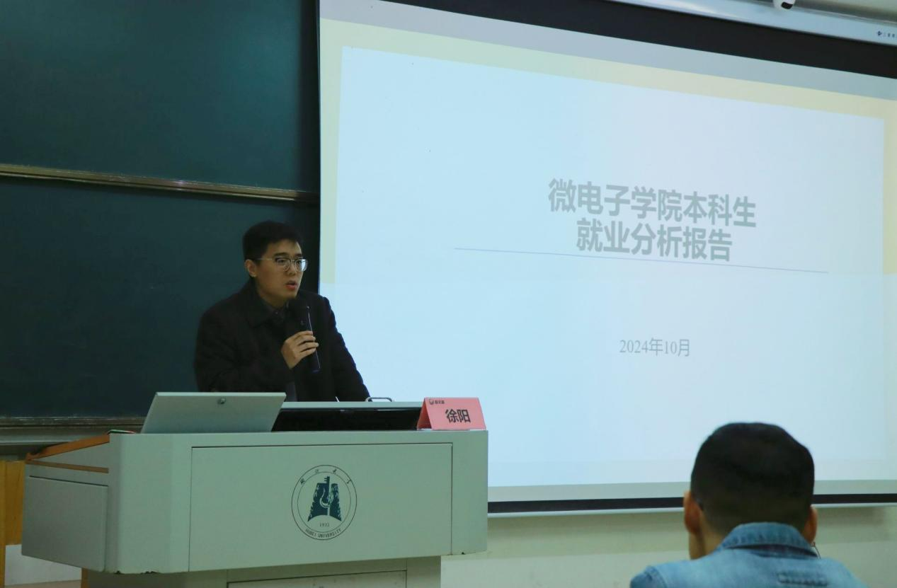 在此次活动中,黄老师首先向在场同学们分享了学院往届就业、考研具体情况,并向大家介绍了目前大背景下更利于同学未来的发展的就业选择。他强调,如今考研、就业竞争激烈,学生们需不断强化自身的综合素养,扎实掌握专业知识,来迎接诸多挑战。
