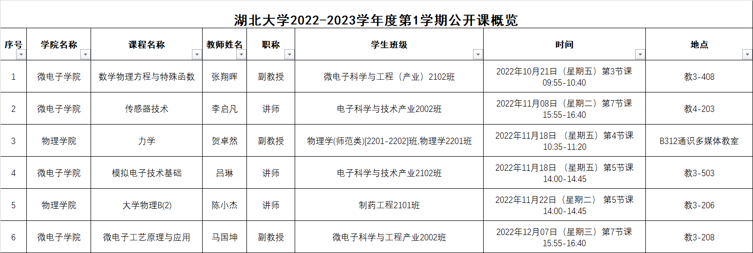 物理学院、9428cn太阳集团古天乐2022-2023学年度第1学期公开课概览