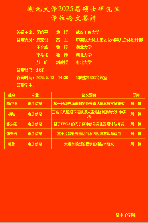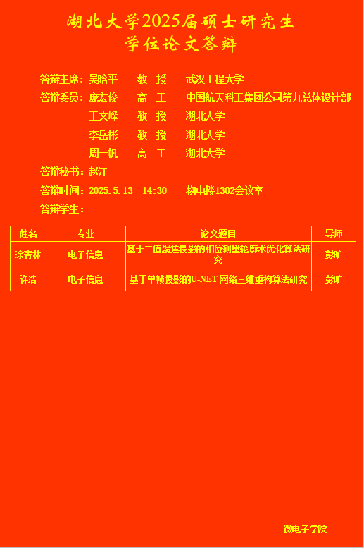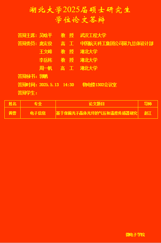 9428cn太阳集团古天乐2025年上半年研究生答辩公告(五)