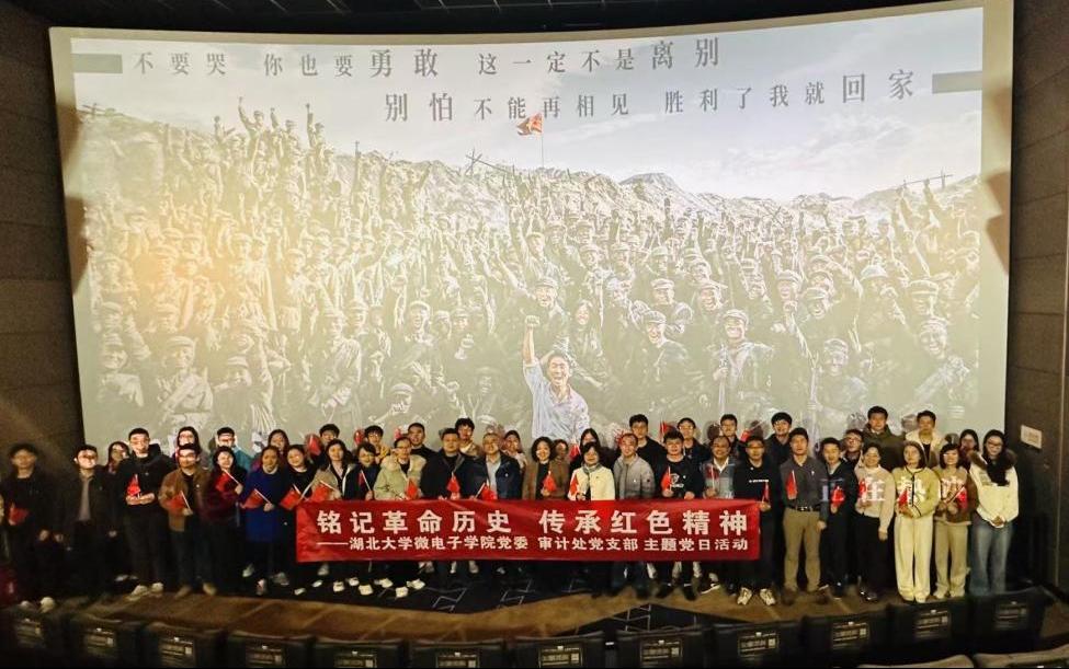 为庆祝中华人民共和国成立75周年,纪念抗美援朝战争胜利71周年,进一步深化爱国主义教育,弘扬爱国主义精神,引导党员同志不忘党员初心,牢记职责使命,2024年11月22日,9428cn太阳集团古天乐党委、审计处党支部全体教工党员在绿地巨幕影城开展“铭记革命历史,传承红色精神”联合主题党日活动,集体观看影片《志愿军:存亡之战》。