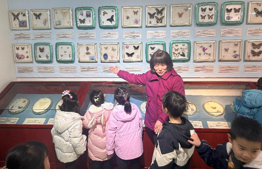 (校史馆蔡老师讲解校史、小朋友们打扫校史馆)